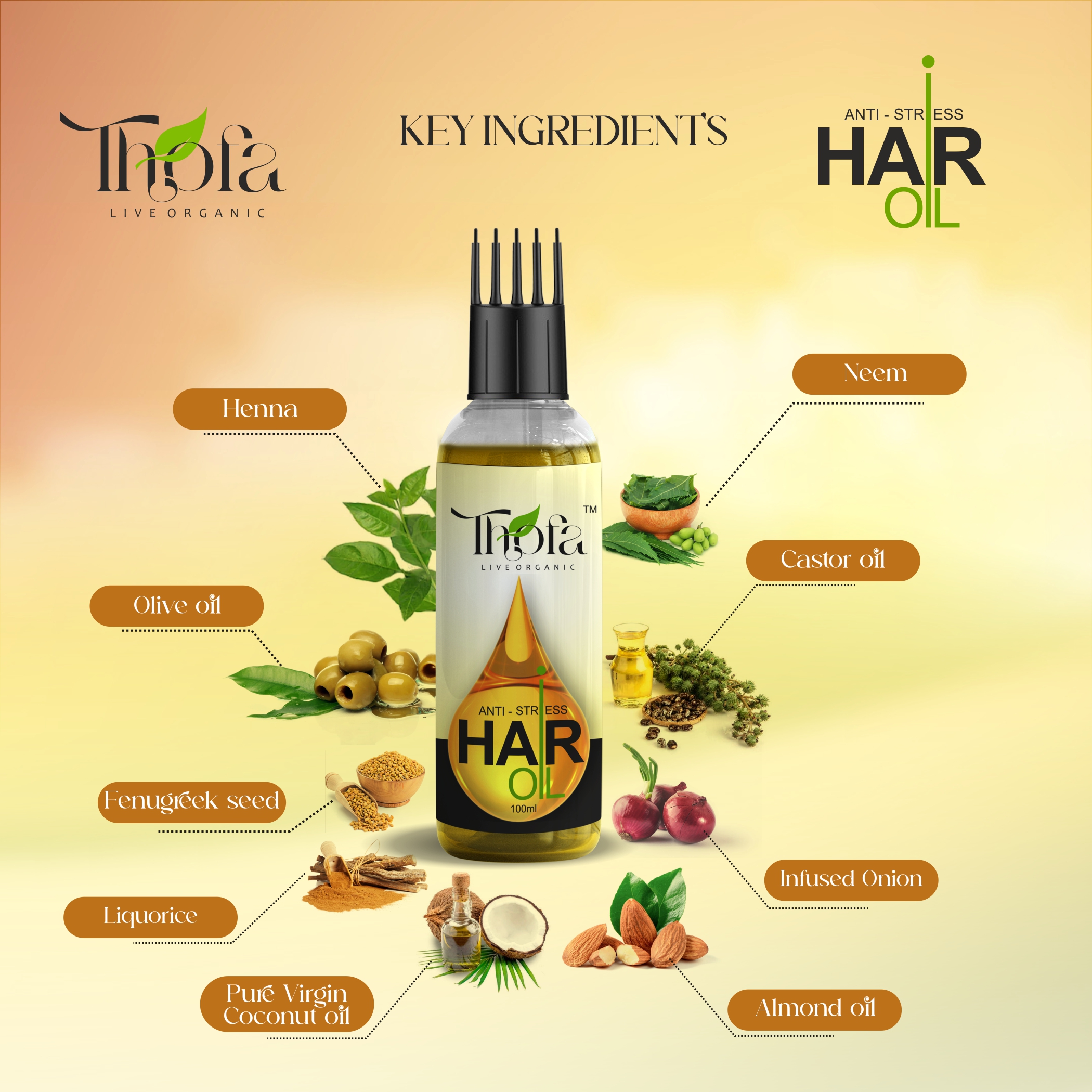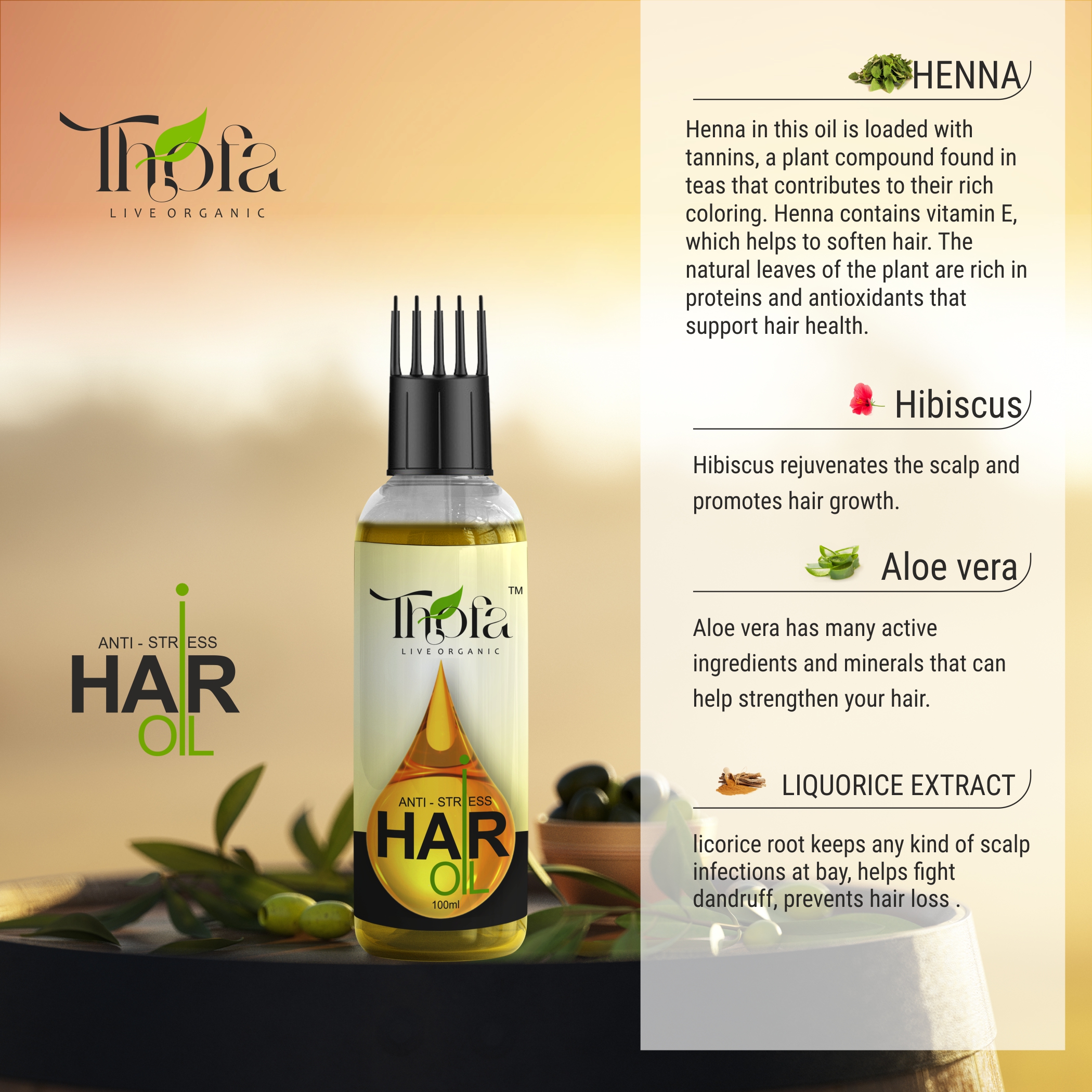 Thofa hair oil has a wide array of benefits while nourishing and strengthening the hair. These benefits include hair fall & thinning control, and dandruff control, all while preventing dryness. Enjoy all these benefits with your purchase of Thofa Anti Stress Hair Oil