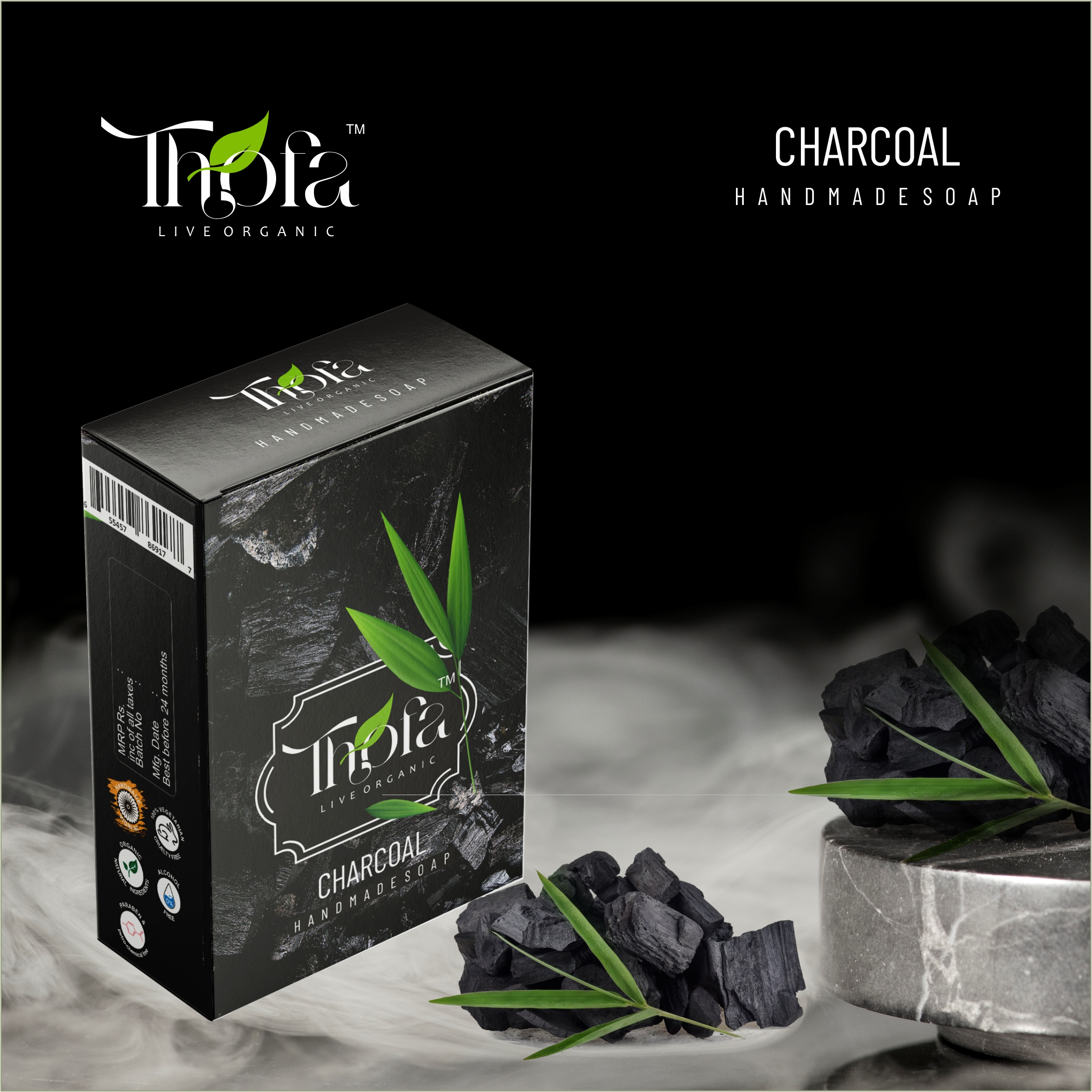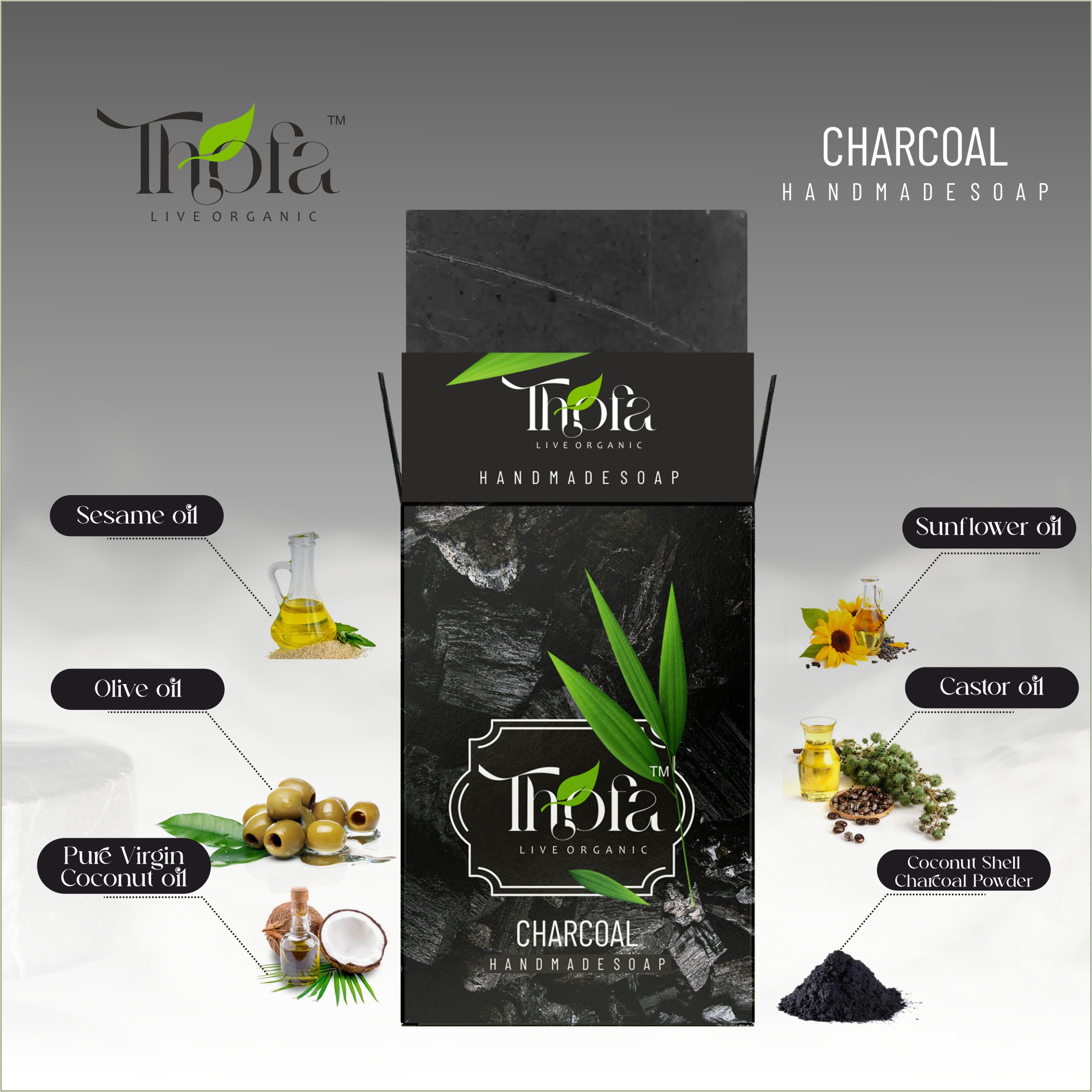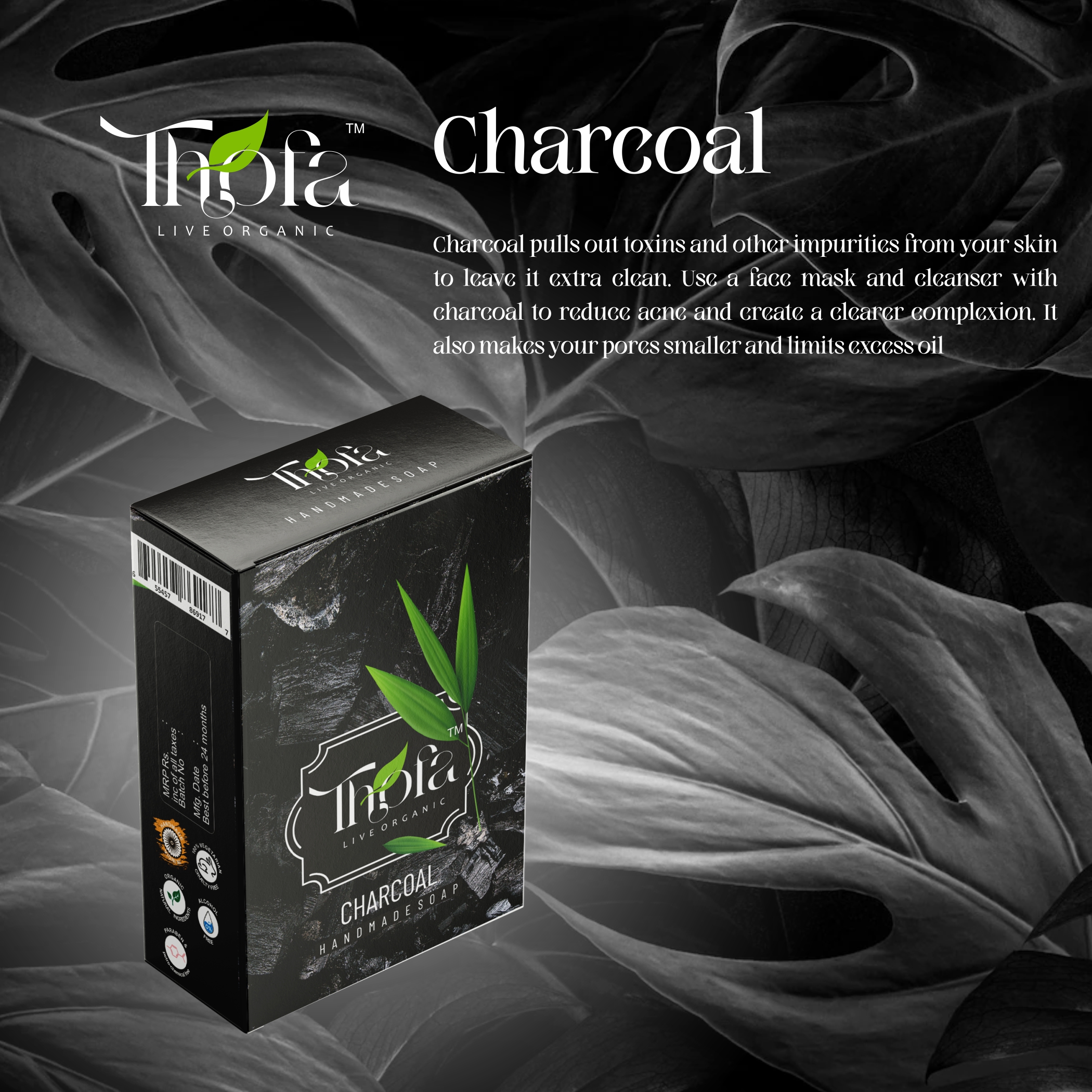 Thofa Charcoal Handmade Premium Bath Soap For Men & Women Fights Impurities, Acne With Coconut Shell Charcoal Powder 100G