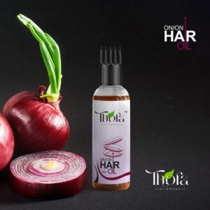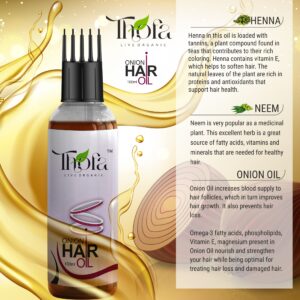 Thofa Live Organic Onion Hair Oil Extra virgin coconut oil, Olive oil, Castor oil, Infused with Onion Natural Hair Growth Oil Strengthens Hair Follicles 100ml