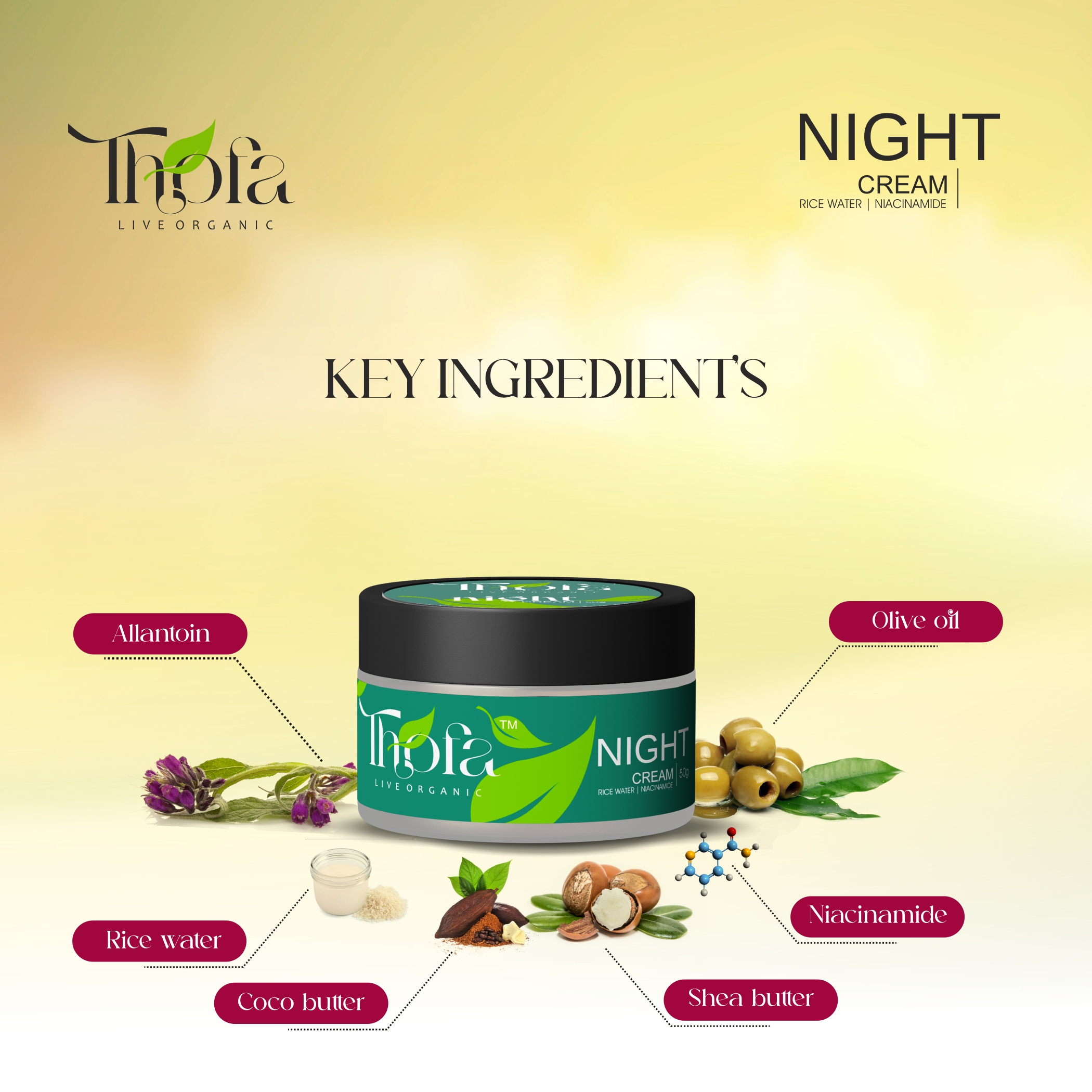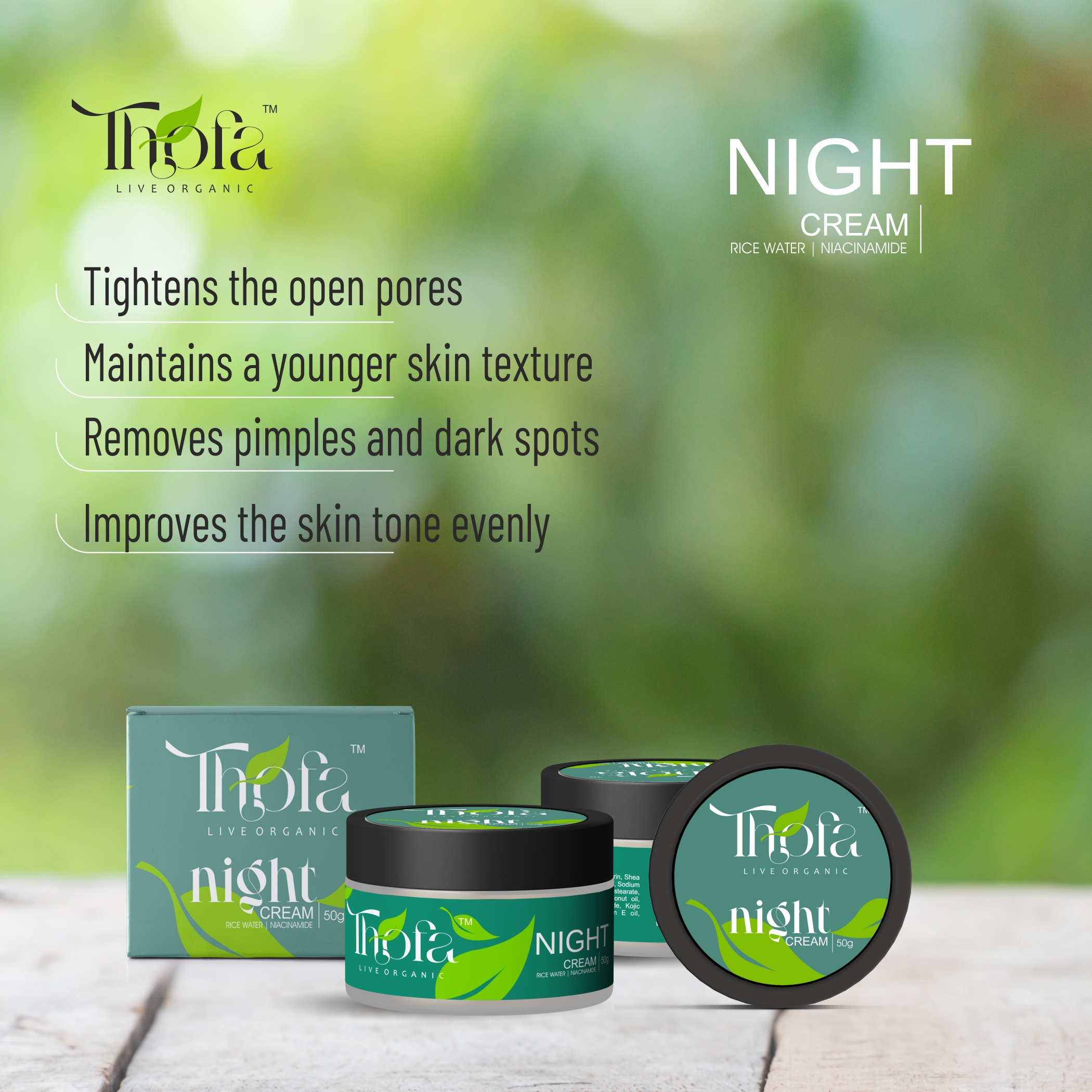 Thofa Night Cream With Shea Butter & Cocoa Butter Fights Pimples & Dark spots Glowing Skin Natural Ingredients 50G